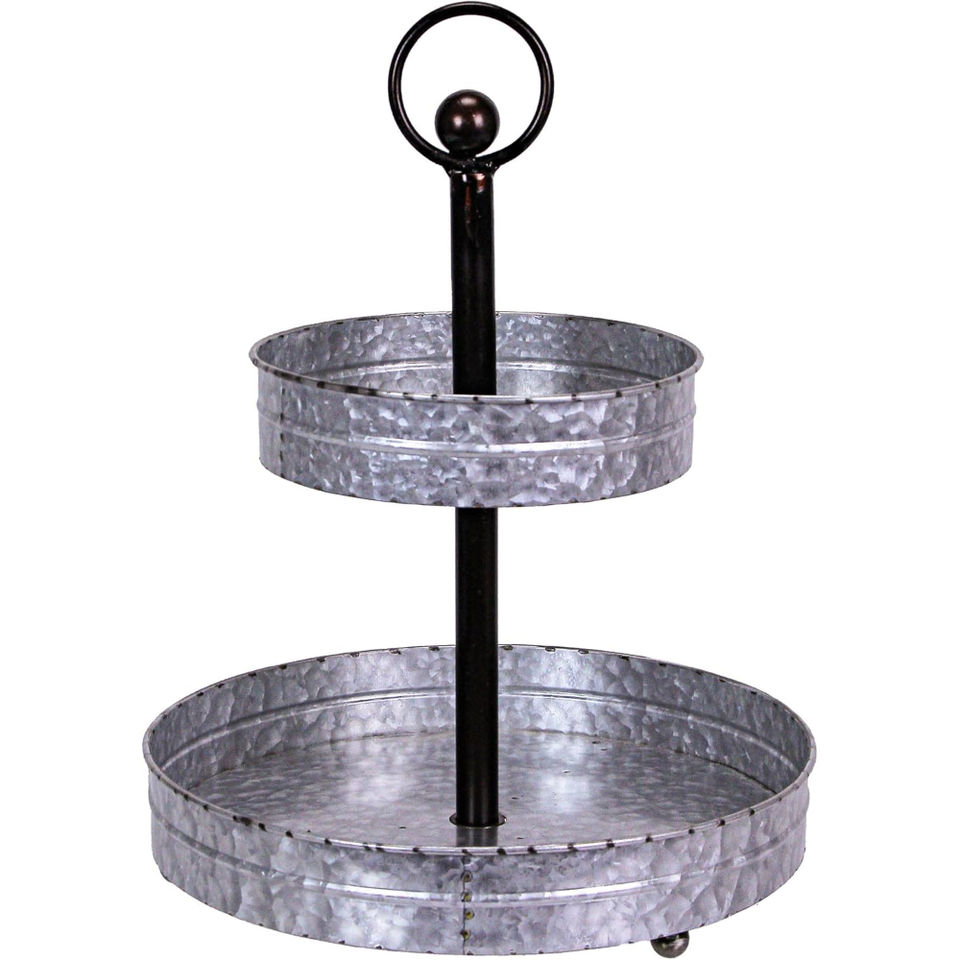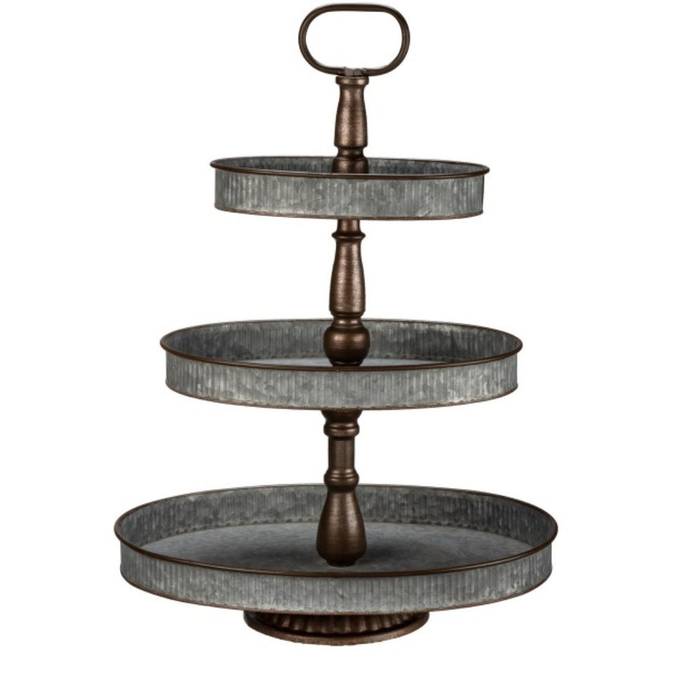 Rustic Farmhouse 3 Tier Galvanized Metal Display Stand Durable Round Iron Tiered Serving Tray For Cakes Cupcakes Table Decor