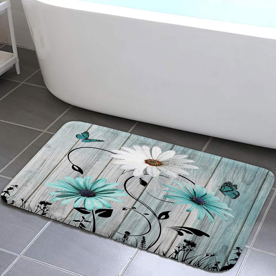 Tapis de bain floral ferme rustique sarcelle marguerite fleurs motif papillon tapis de bain antidérapants ensembles de tapis de bain vieux pays Turquoise B
