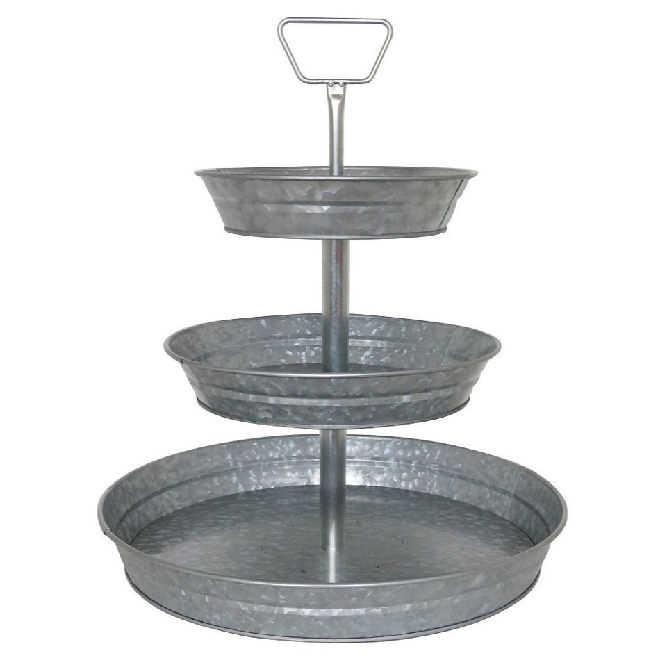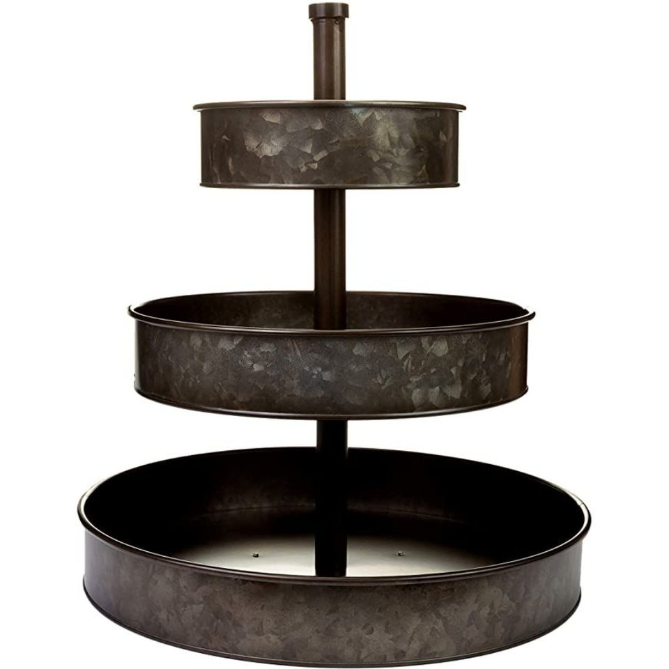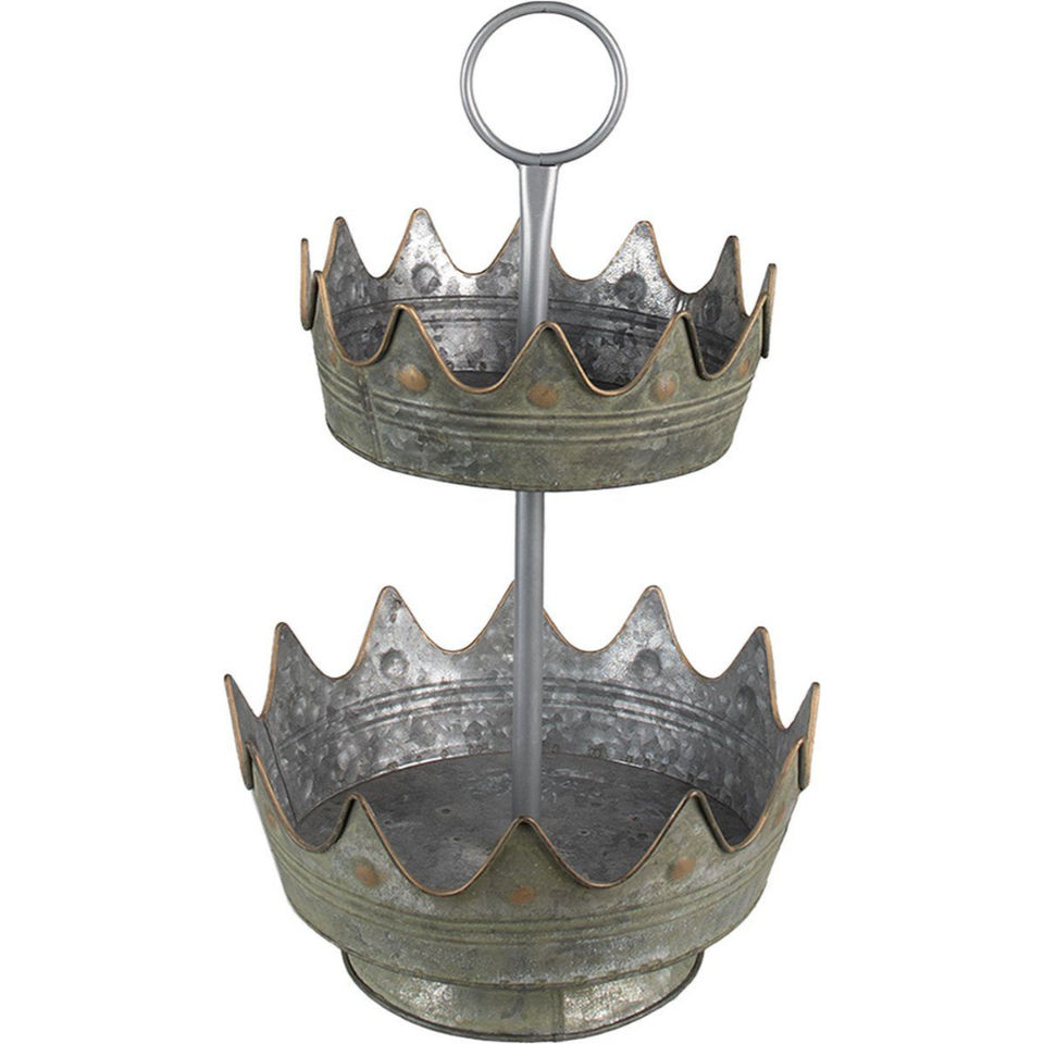 Support de service rustique en métal galvanisé à 2 niveaux, plateau décoratif en fer à bordure couronnée pour cupcakes, gâteaux et desserts, pour la cuisine