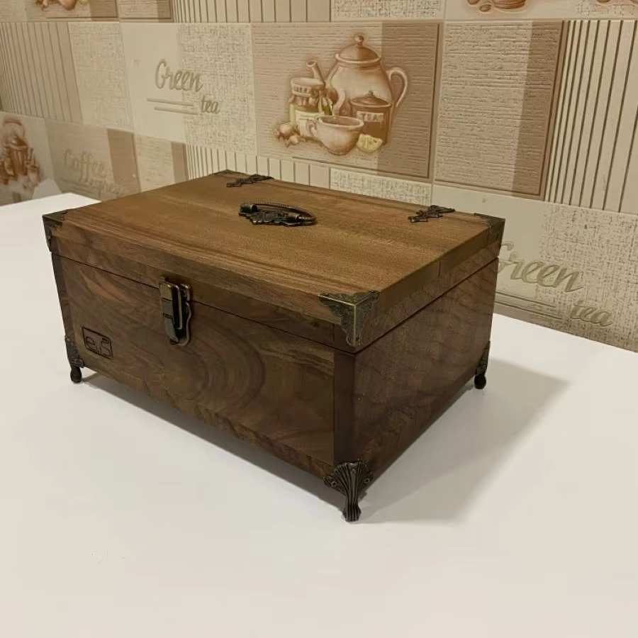 Boîte de rangement en bois d'acacia finition rustique pour la décoration, les bijoux, les outils ou les souvenirs, style bohème fait main en provenance d'Inde