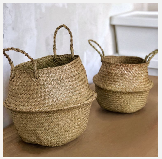 Rustique Pliable À La Main Seagrass Ventre Panier Naturel Tissé De Stockage Organisateur Décor