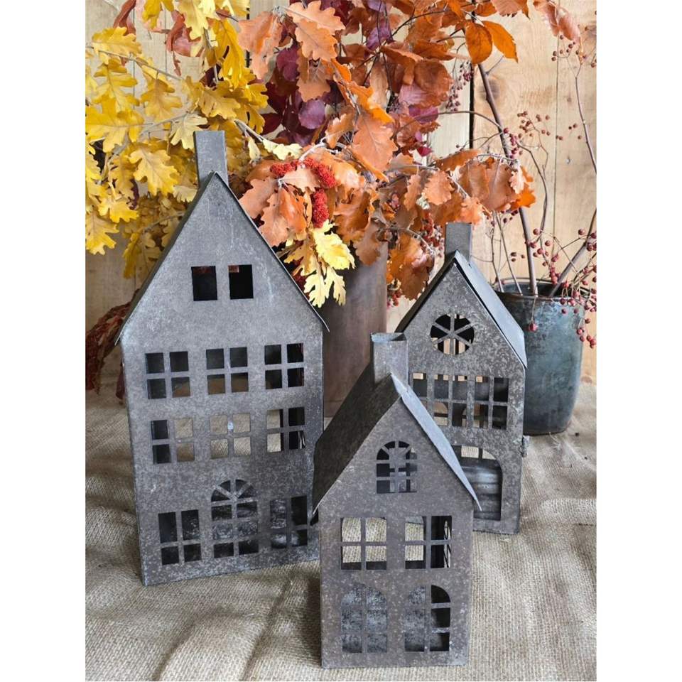 Ensemble de bougeoirs rustiques en métal galvanisé, lanternes décoratives en zinc antique pour bougies chauffe-plat, pour la décoration de Noël à la maison