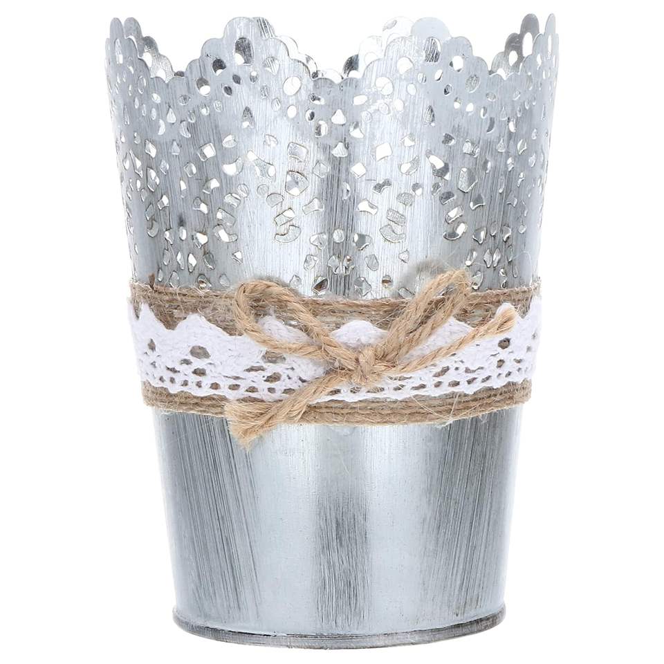 Vase galvanisé rustique avec poignée Shabby Chic fer-blanc Pot de fleur rétro fleur séchée étain conteneur suspendu plante porte-fleur