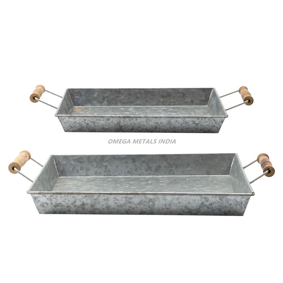 Rustic Gray Rectangular Serving Tray With Wooden Handles and Sturdy Design Ideal for Charming Home Decor and Entertaining