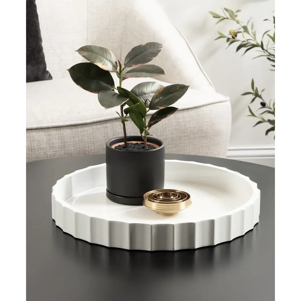 Plateau de service de luxe en céramique artisanale rustique à motif végétal avec cadre métallique, style américain écologique pour événements ZahidExports