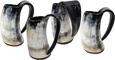 Chope à bière rustique en corne d'animal polie, forme naturelle, style viking, accessoire de bar à domicile