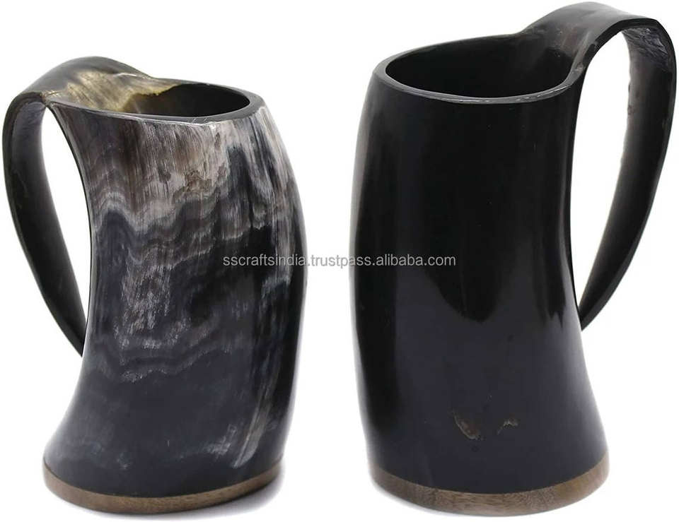 Tasse en corne rustique pour les fêtes médiévales, le camping et les aventures en plein air, fabriquée à la main à partir de cornes d'origine éthique à vendre