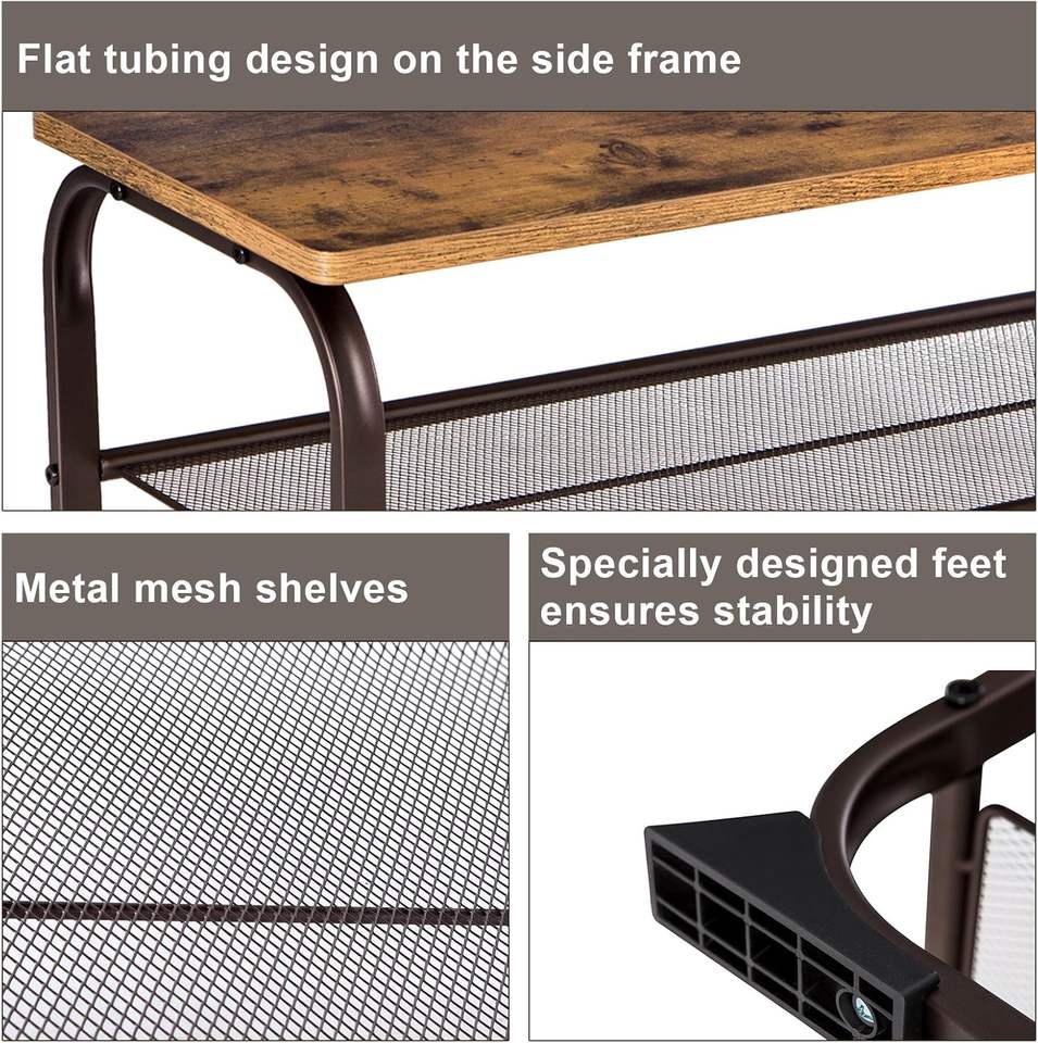 Étagère à chaussures rustique industrielle à 3 niveaux avec plateau en bois et étagères en métal grillagé pour entrée, couloir et salon