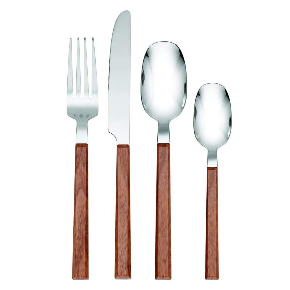 Assortiment de couverts en acier inoxydable d'inspiration rustique avec manches en bois, style royal, lavable au lave-vaisselle, artisanat traditionnel pour