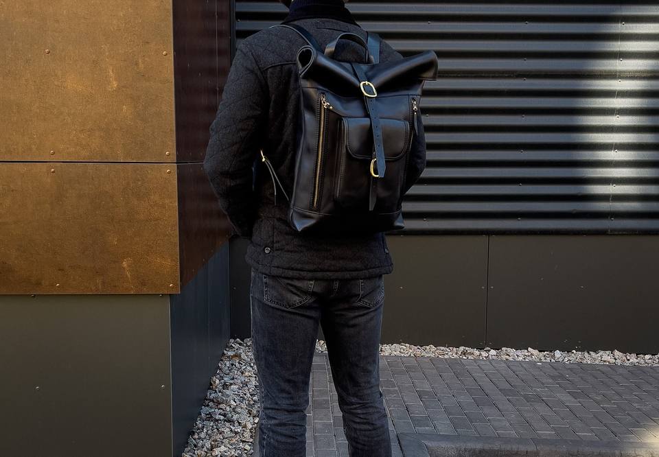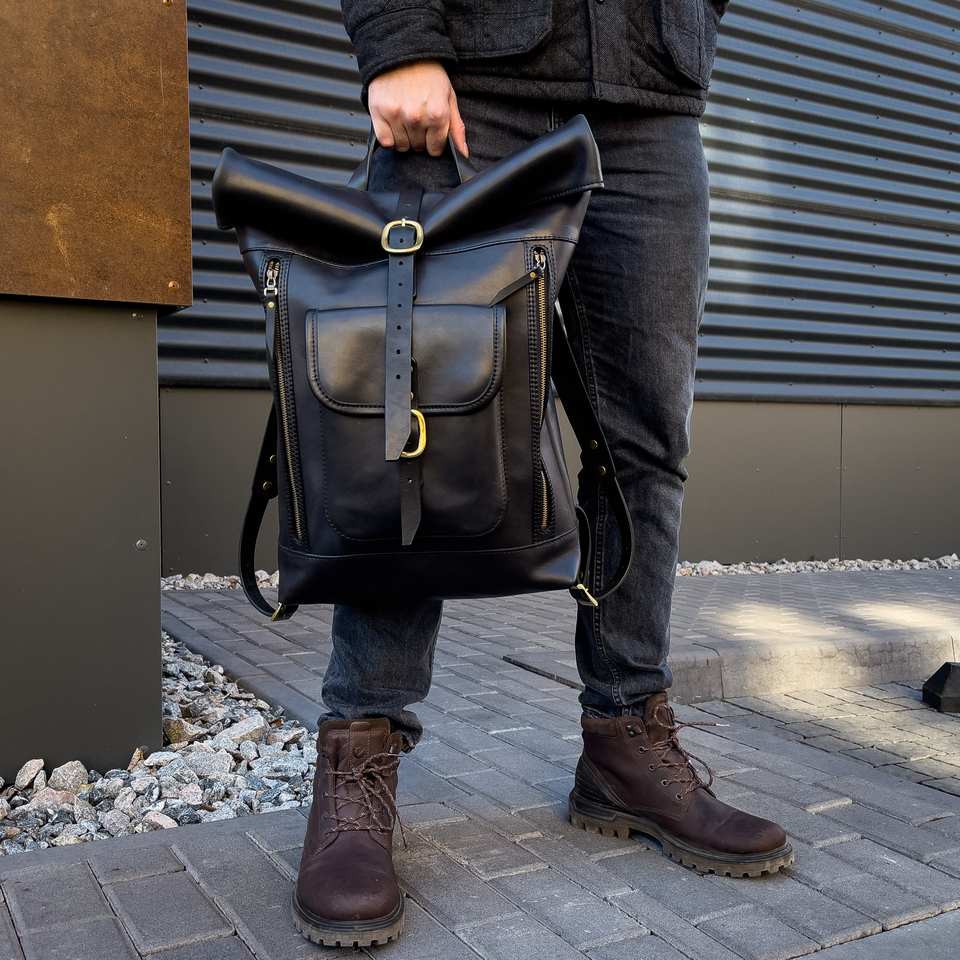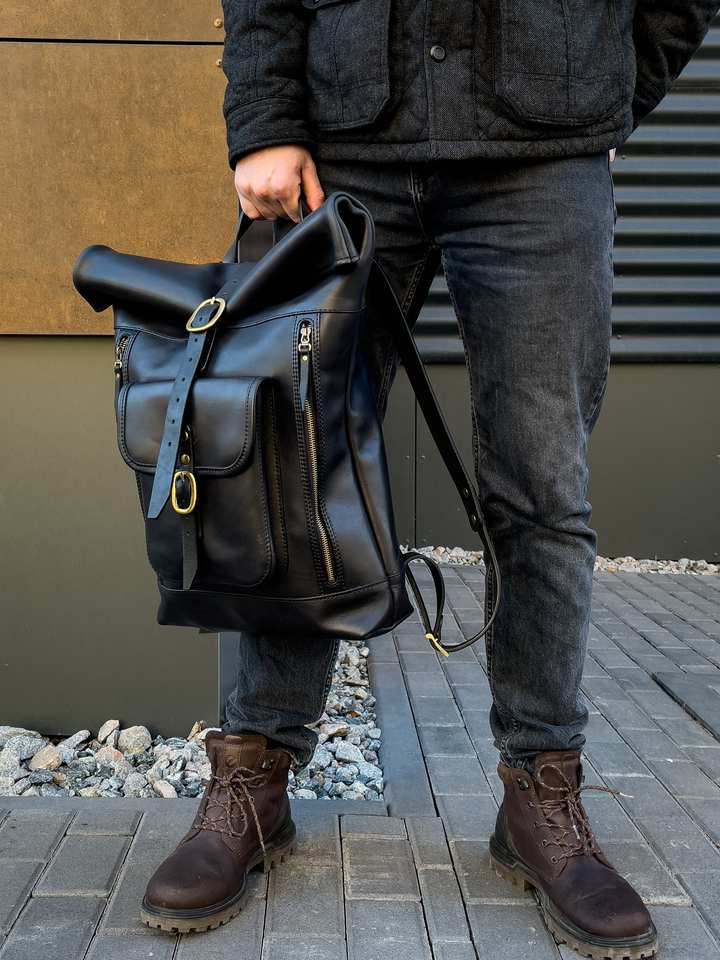 Sac à dos en cuir à enroulement