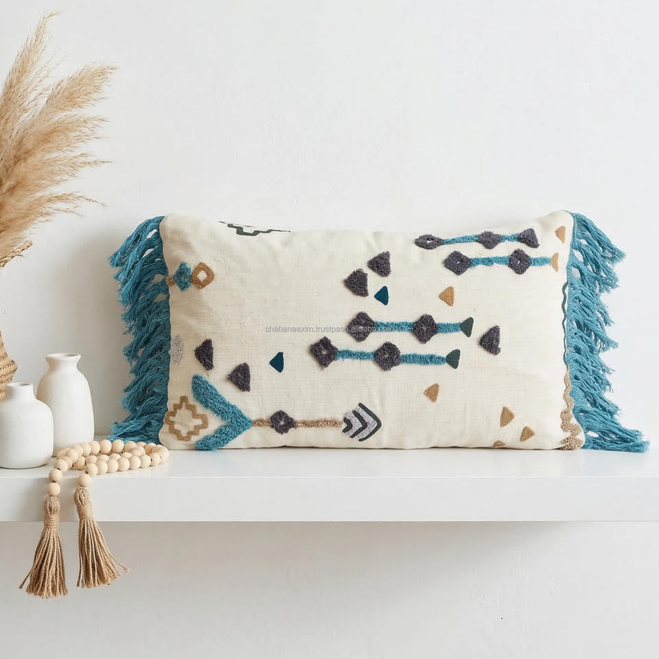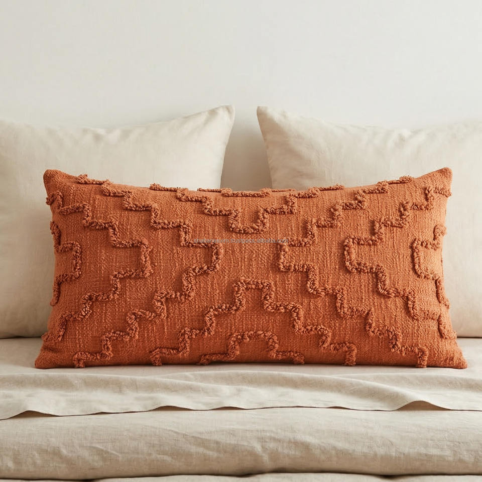Housse de coussin lombaire rustique, durable, faite à la main, motif géométrique, 30x50, style vintage, pour décoration de literie, taie d'oreiller décorative