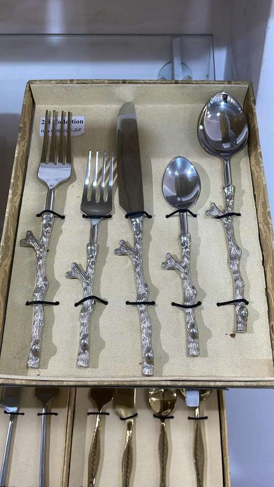 Ensemble de couverts en acier inoxydable de luxe rustique avec manche en résine, 5 pièces, fourchette, cuillère et couteau, spécial pour les fêtes de mariage