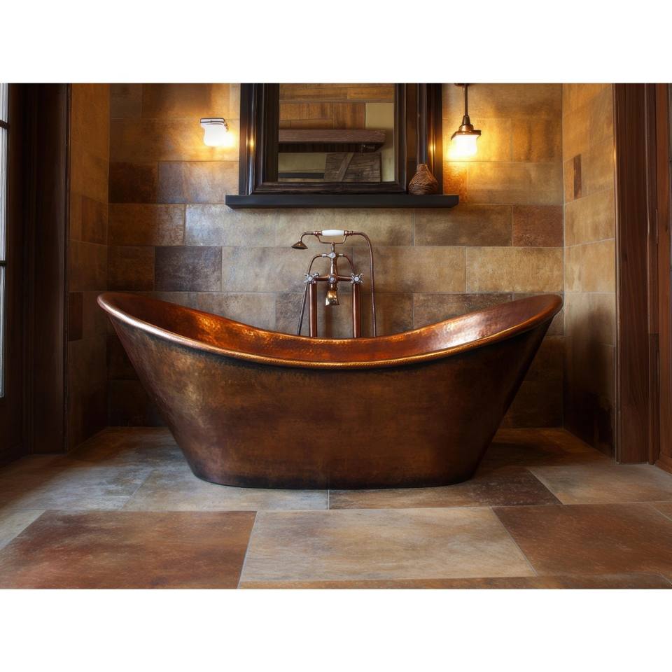 Luxe rustique pour salle de bain intemporelle Design autoportant Artisan baignoire de trempage Vintage baignoire en cuivre martelé à la main