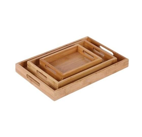 Plateau de service en bois de manguier rustique pour la décoration de table basse et l'ameublement ottoman, plateau avec poignées pour le petit-déjeuner, le lit et l'hôtel