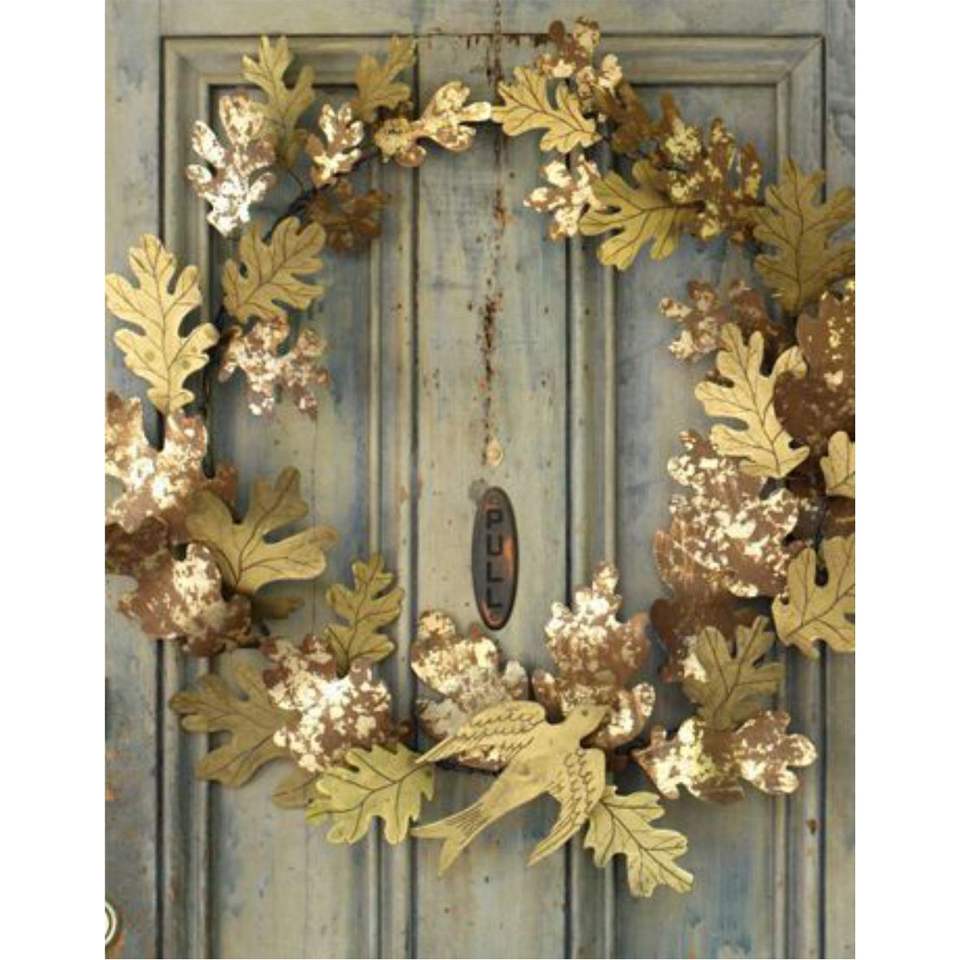 Couronne rustique en métal feuilles d'automne, faite à la main en fer, décoration murale pour l'extérieur, jardin, ferme, ornement artistique pour la maison