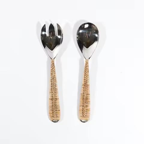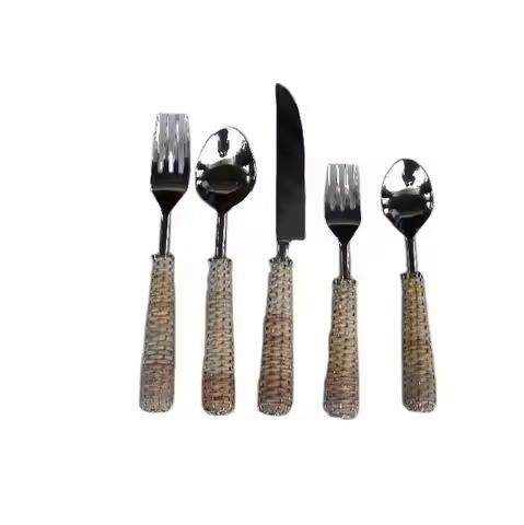 Ensemble de couverts en métal rustique avec poignée en rotin vaisselle moderne en acier inoxydable couverts pour un repas élégant