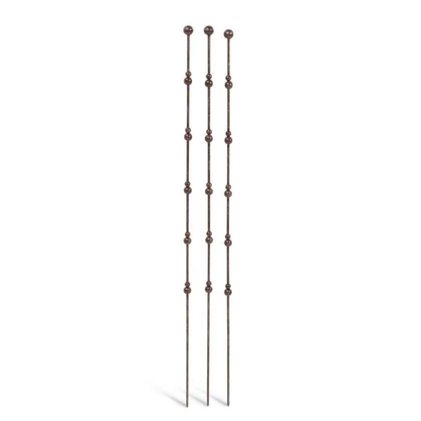Piquets de jardin rustiques en métal avec design perlé décoratif, longues tiges de support pour plantes en fer pour la décoration extérieure des pelouses, des cours et des allées