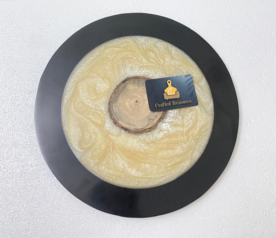 Plateau de service en résine époxy Fusion moderne rustique Plateau en résine blanche fait à la main avec accent en bois pour la charcuterie et le plateau de service