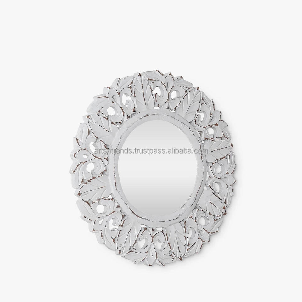 Miroir rond décoratif mural rustique moderne fait main, gravé argenté, faible MOQ, fabricant et grossiste sur mesure