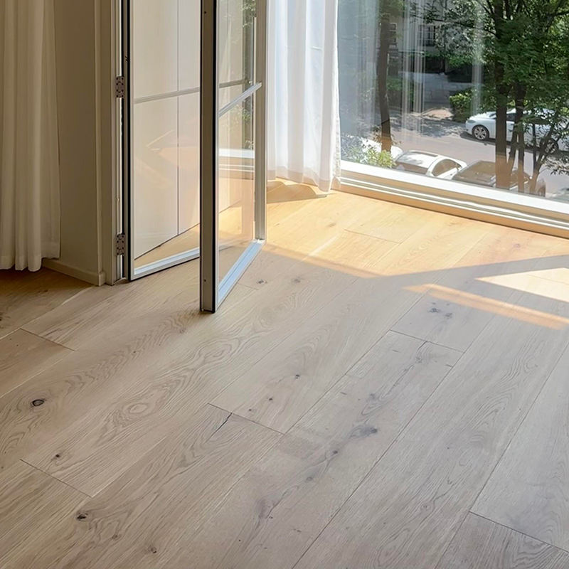 Parquet en bois d'ingénierie en chêne naturel rustique, 15 mm d'épaisseur, parquet droit, brossé blanc, pour usage intérieur et villa