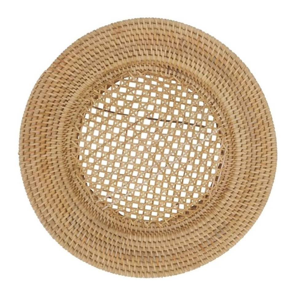 Assiettes de présentation en rotin écologiques Assiette de service rustique faite à la main durable en gros pour les acheteurs commerciaux de restauration