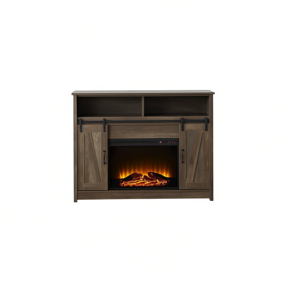 Cheminée électrique avec 2 étagères et portes, chêne rustique, 1500W, 10000-19999 BTU, montage au sol pour usage domestique