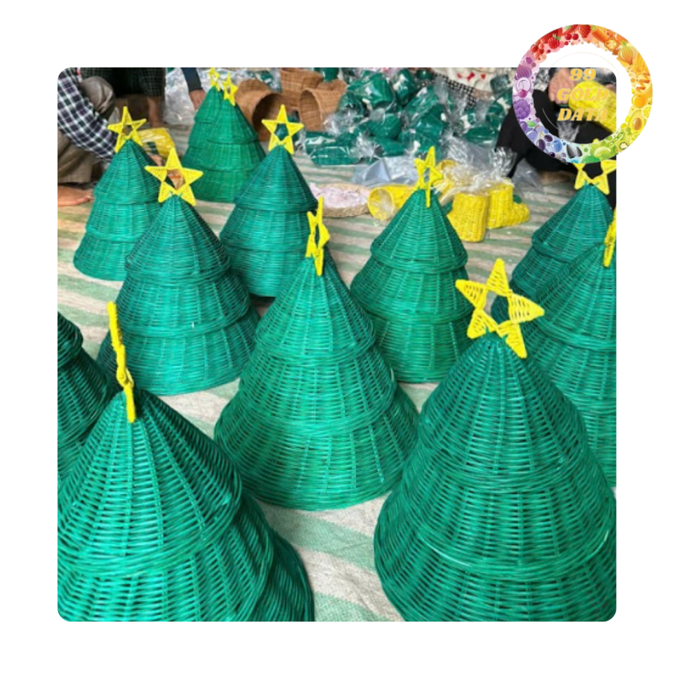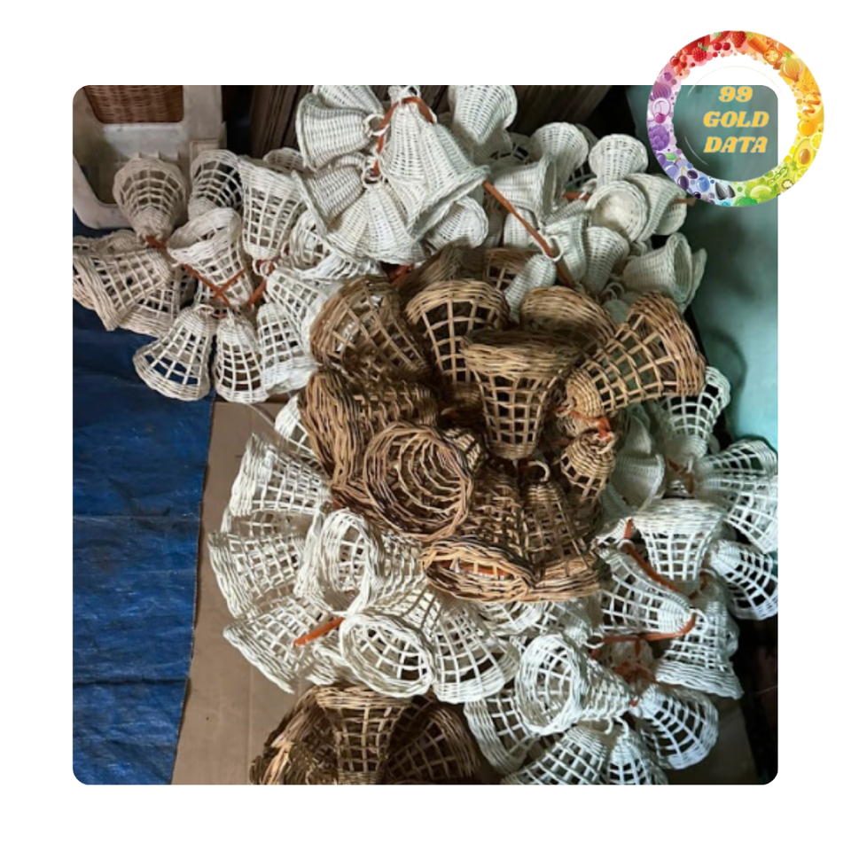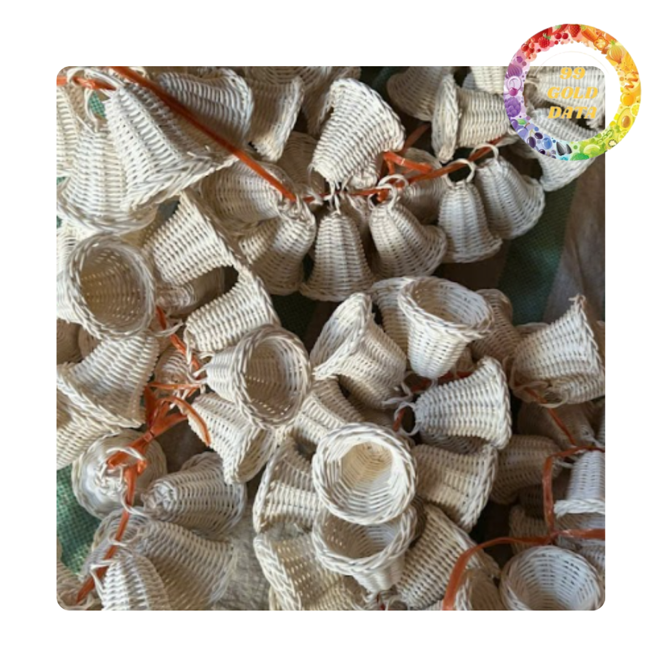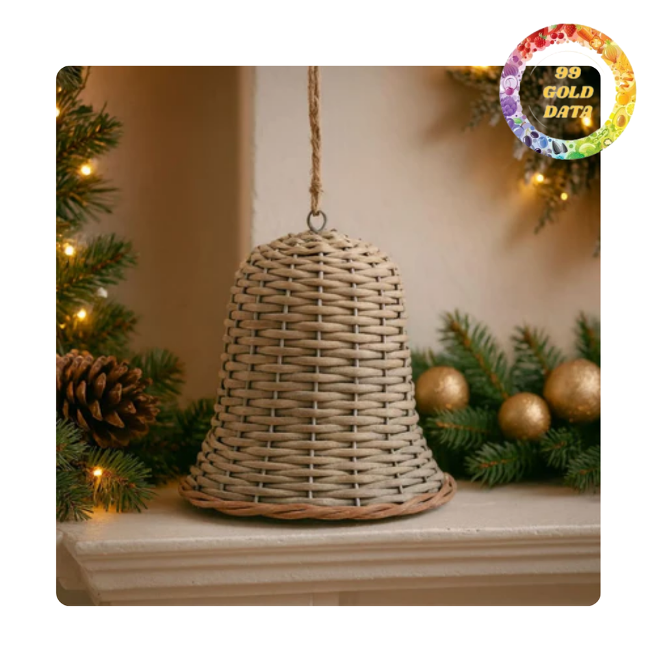 Ornement de cloche en rotin rustique du Viet Nam | Décor de sapin de Noël naturel
