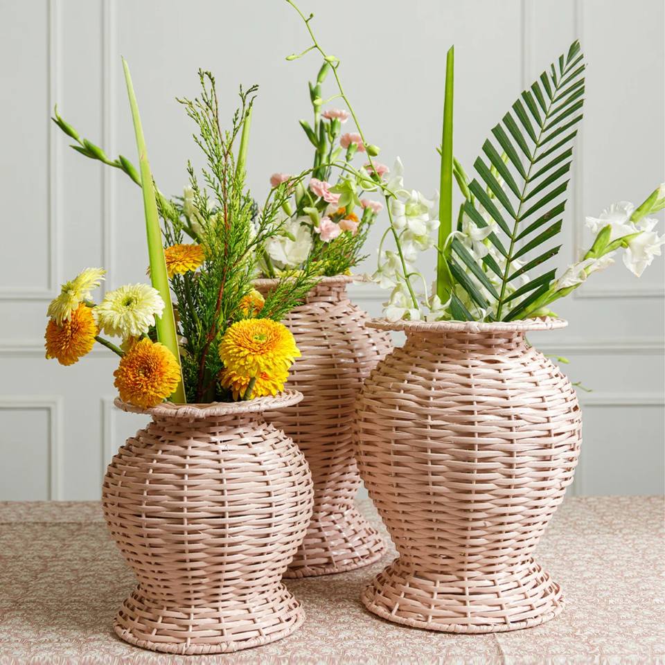 Vases en rotin rustique, style urne, pour décoration intérieure, tressés, bohèmes, vintage, pour fleurs, fabriqués au Vietnam