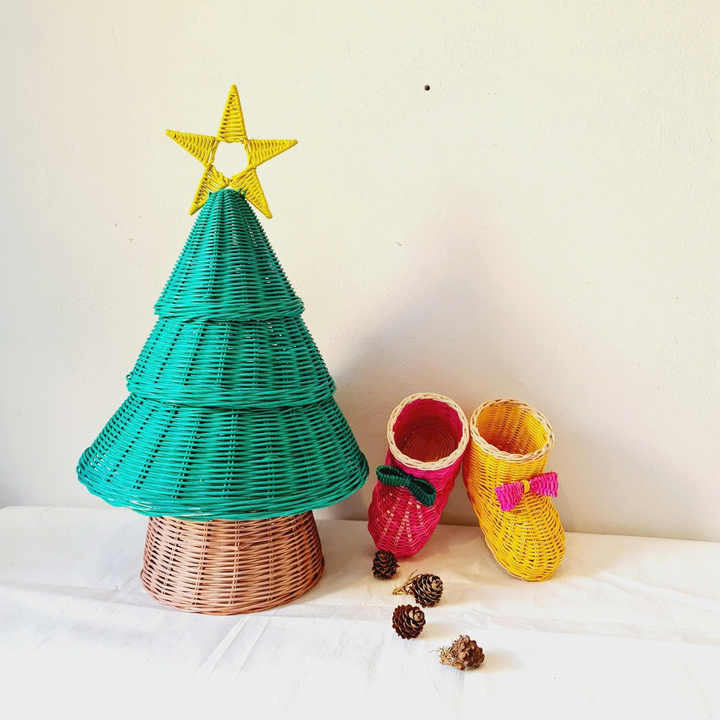 Ensemble d'ornements de Noël en osier de rotin rustique du Vietnam pour décor d'arbre naturel et décoration de vacances artisanale