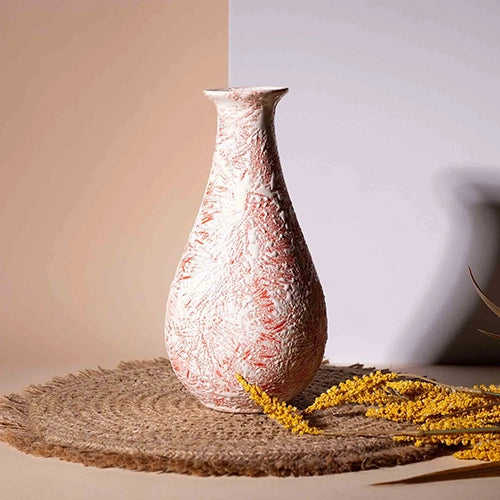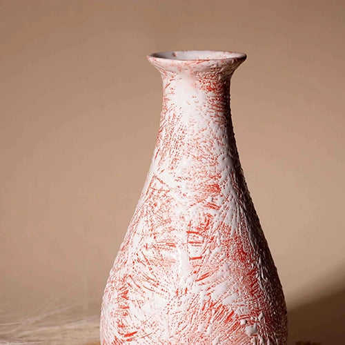 Vase à bouteille en céramique artisanale texturée rouge rustique pour table