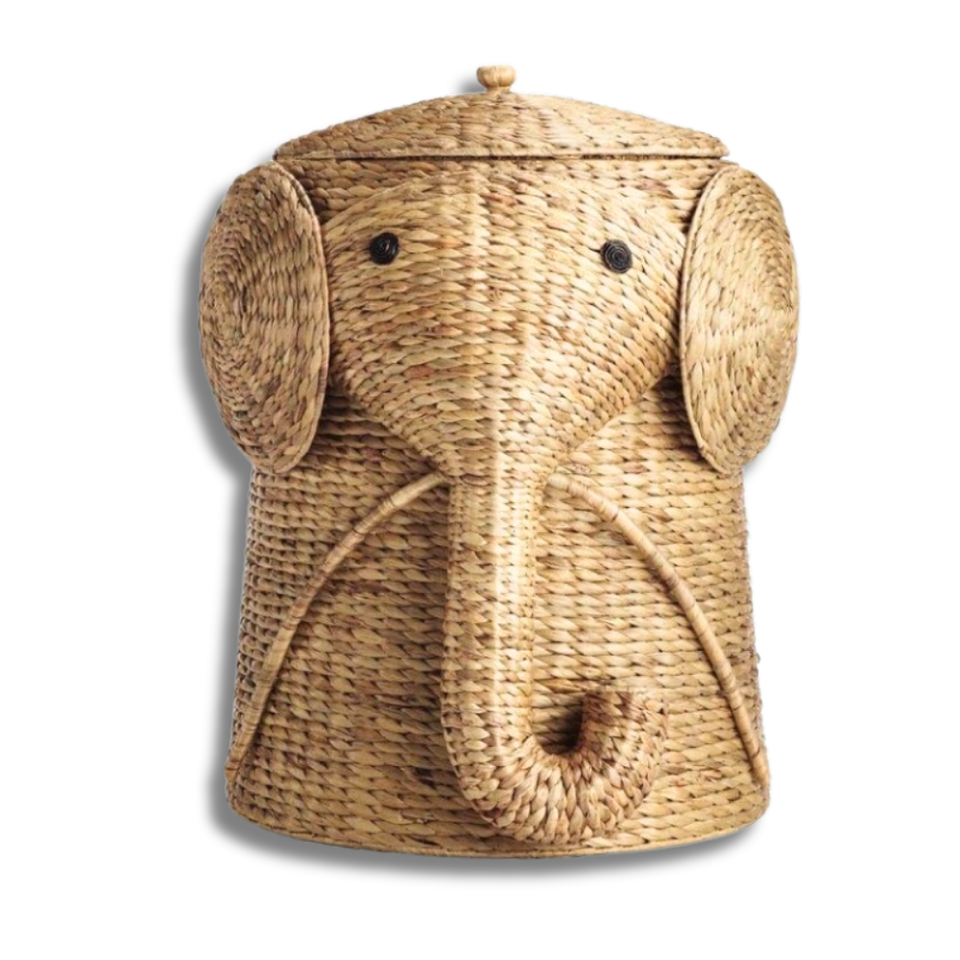 Panier de rangement rustique en forme d'éléphant en bambou en rotin de jonc marin idéal pour organiser et décorer