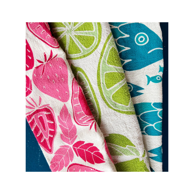 Rustic Slub Handmade Fish Printed 18x28in 440GSM 100% Cotton Embroidered Golf Crest Quick Dry Eco Friendly Kitchen Dish Towel