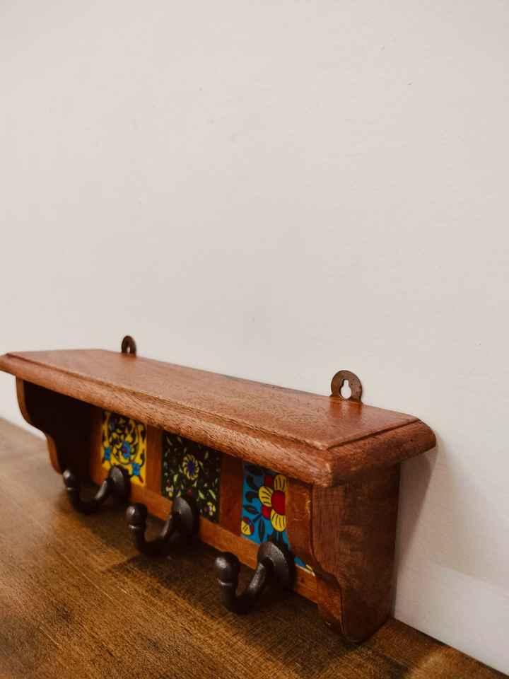 Porte-clés rustique en bois massif étagère murale polyvalente crochets en fer caractéristique réglable pour ferme maison salon décor stockage