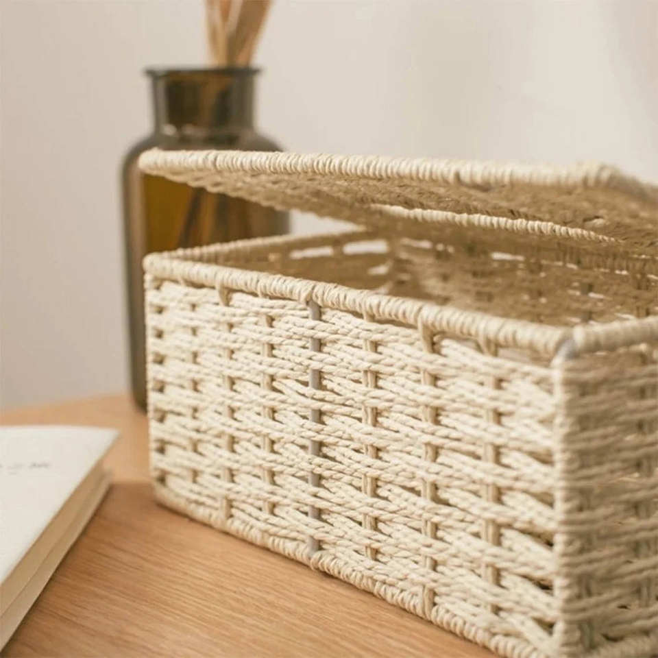 Boîte à mouchoirs en jute de style rustique – Porte-mouchoirs en fibres naturelles fait main pour la décoration de la maison moderne et traditionnelle