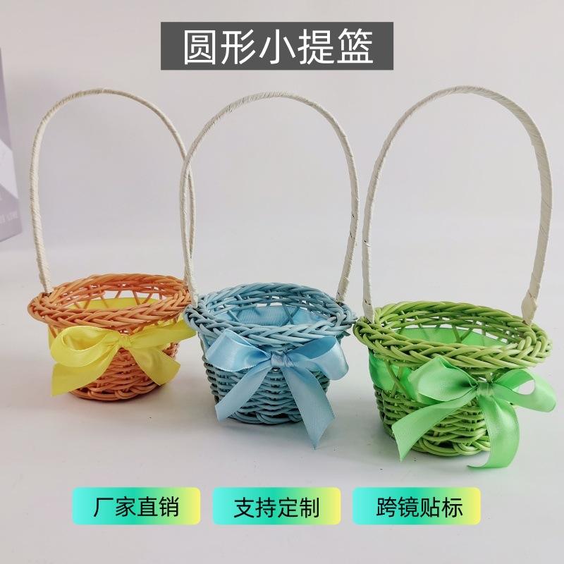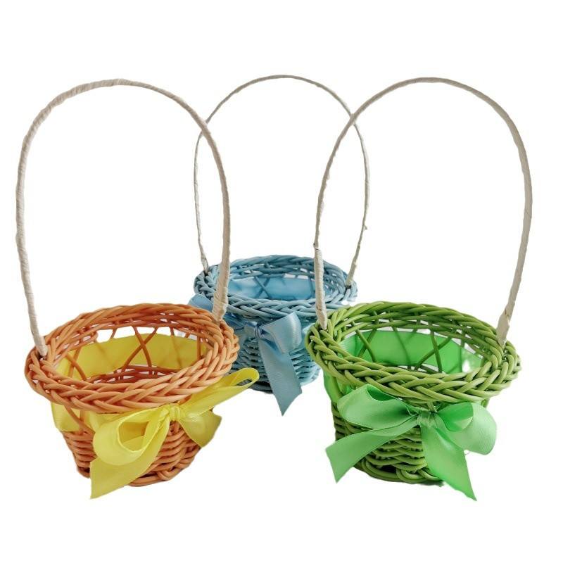 Panier à fleurs rond en PP imitation rotin, style rustique, tissé à la main, panier de rangement, petit panier fait main, bleu clair, vert, orange