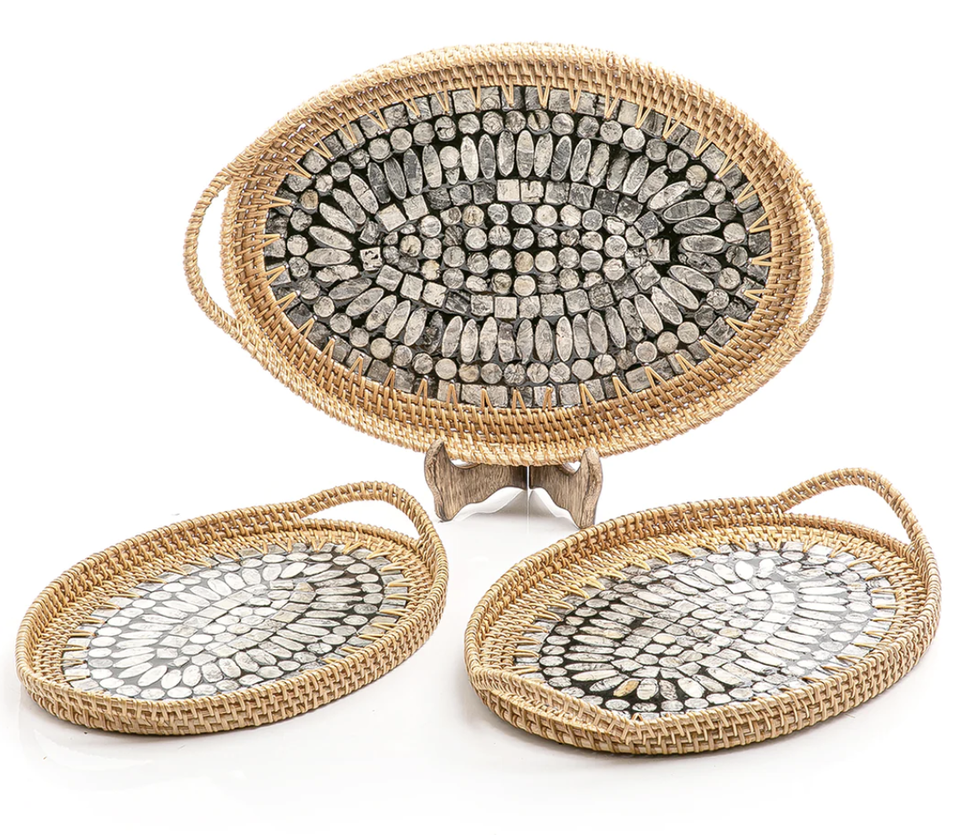 Plateau de service rond en rotin de style rustique avec base vadrouille plateaux à café en osier plateau de service de haute qualité en rotin jute