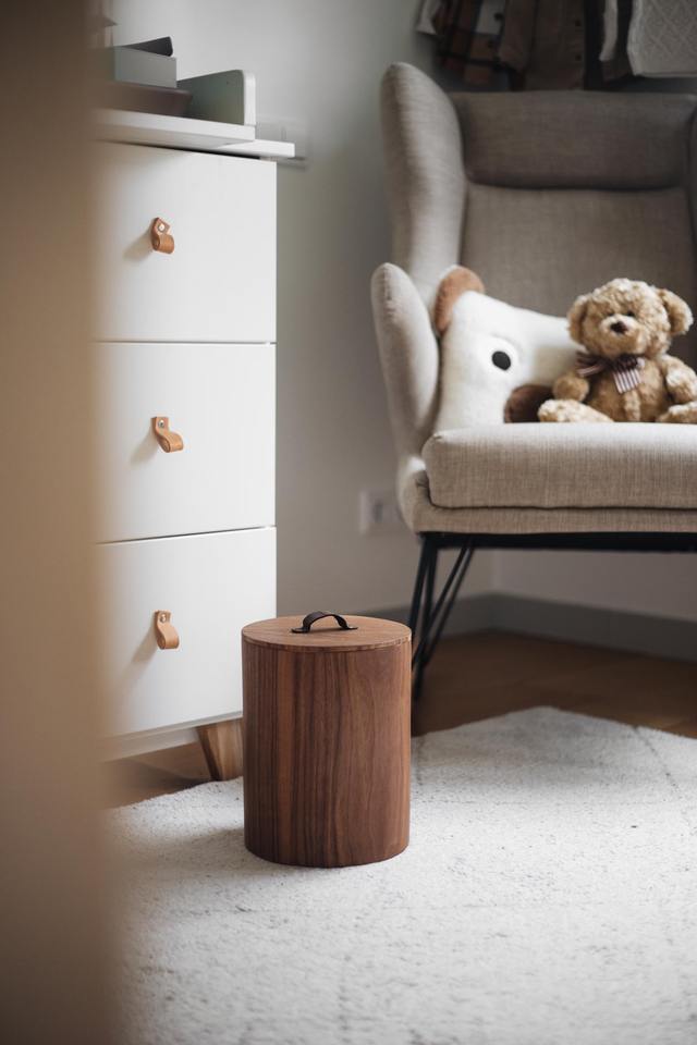 Poubelle ronde en bois de style rustique avec couvercle pour le stockage des déchets secs en intérieur, pour la maison, le bureau, la cuisine et la chambre, provenant d'Inde