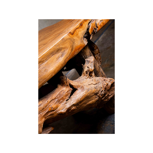Banc en racine de teck rustique fait main, mobilier d'extérieur pour villa, avec une esthétique naturelle et un charme robuste ARTERRA