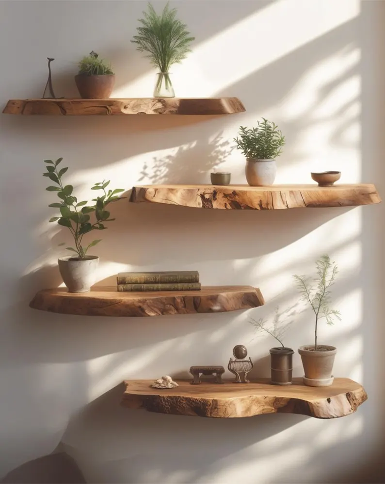 Étagère flottante en racine de teck rustique, étagère murale en bois naturel, plantes, livres, décoration, décoration d'intérieur unique, étagère de rangement en bois