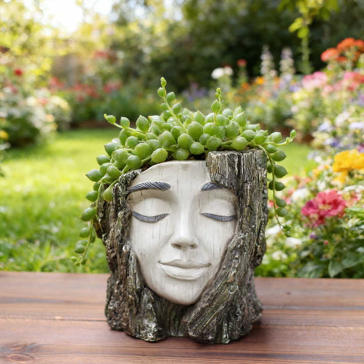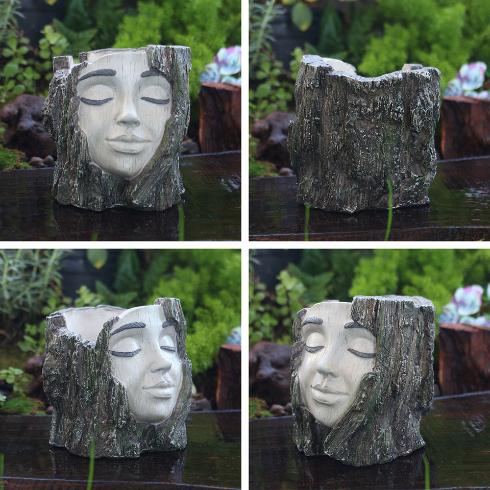 Pot de fleurs rustique en résine en forme de tête d'arbre, inspiré de la nature, pour plantes succulentes