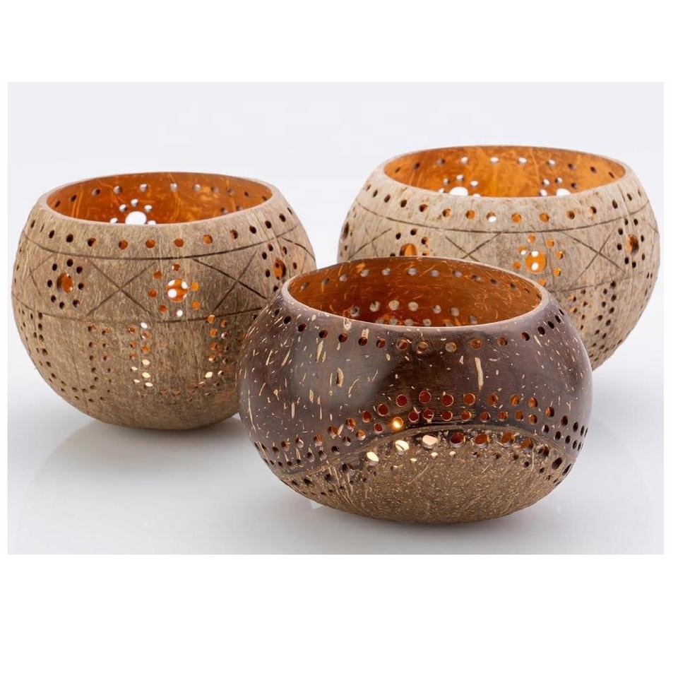 Bougeoir en bois de coquille de noix de coco votive rustique bougeoir en bois de lumière de thé votif pour la décoration de Table de pièces centrales