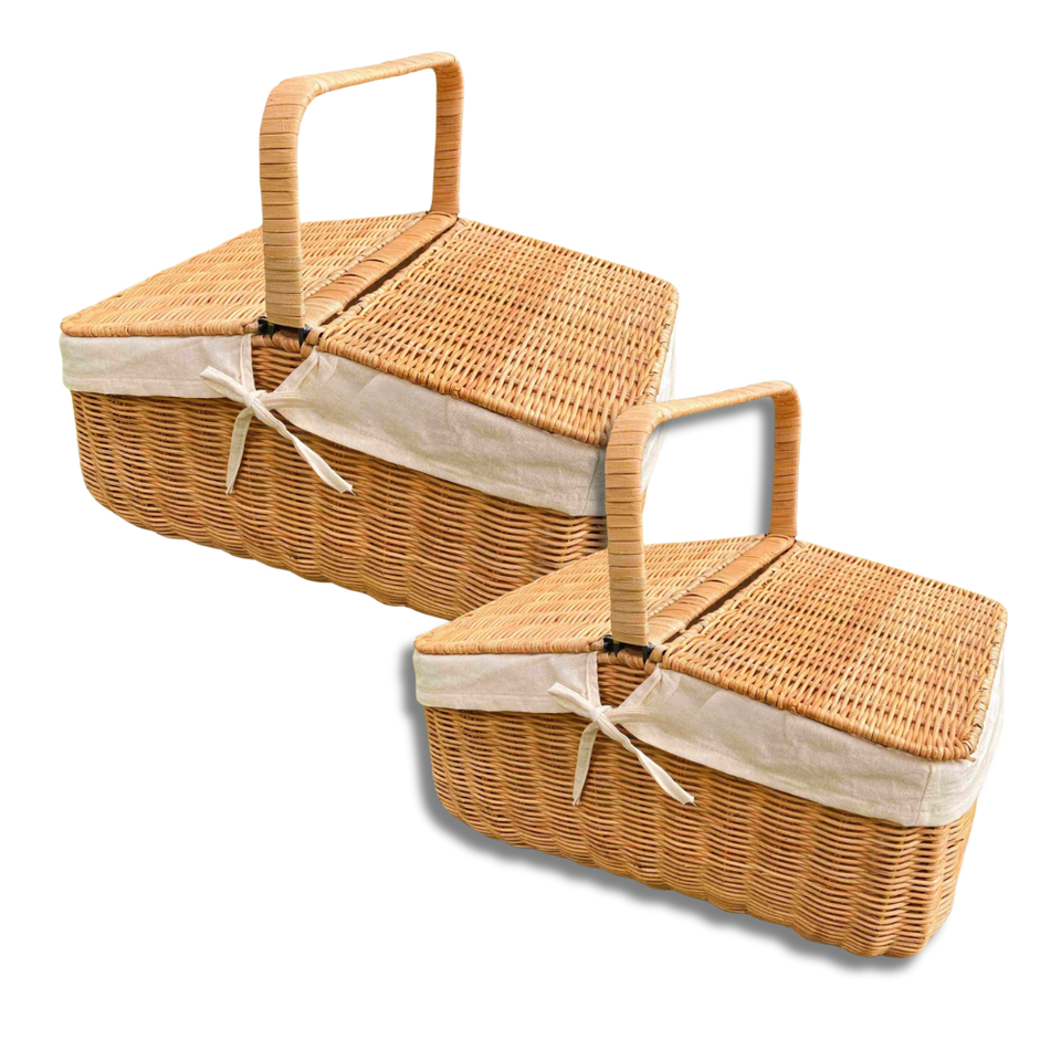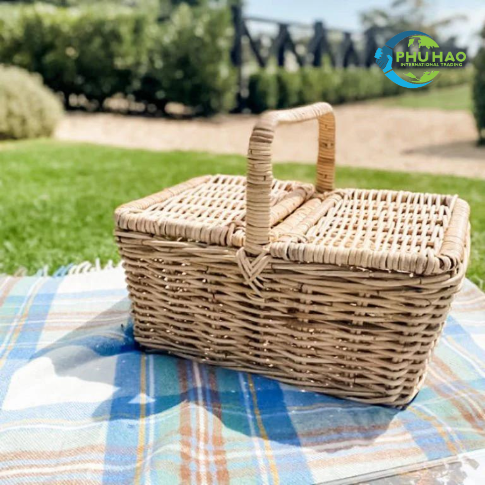 Panier de pique-nique en osier rustique avec couvercle du Vietnam grand panier de récolte en osier léger pour un voyage facile