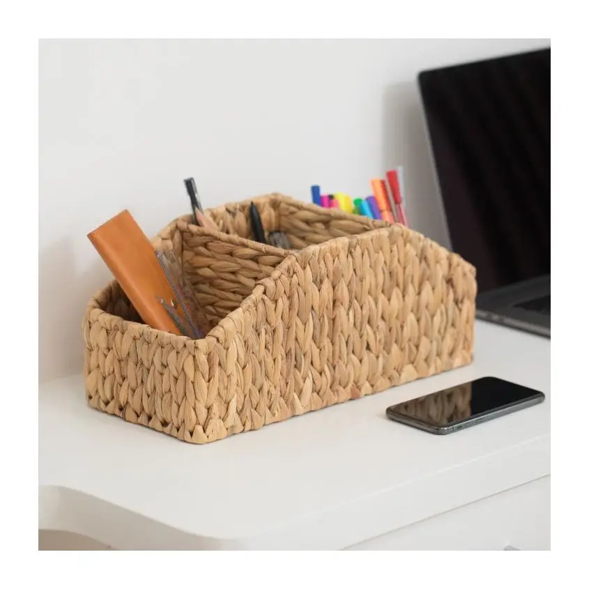Porte-ustensiles en jacinthe d'eau rustique Organisateur de cuisine en forme de rectangle pour couverts, serviettes de table et articles essentiels de table