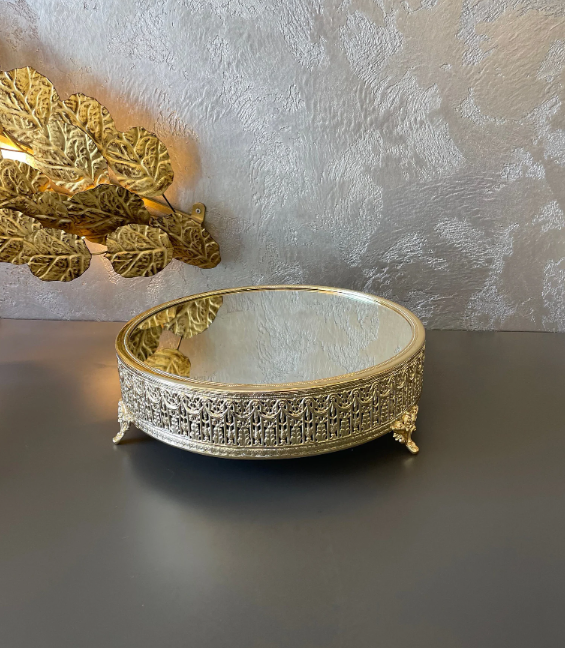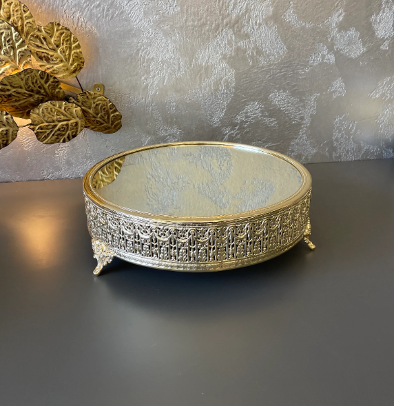 Support à cupcakes en aluminium artisanal écologique avec motif en relief, plaqué nickel, pour les fêtes à domicile