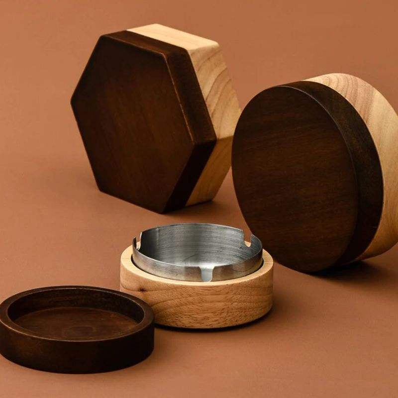 Cendrier en bois rustique avec couvercle fabriqué à la main avec une finition lisse parfait pour les maisons cafés restaurants et balcons d'hôtel