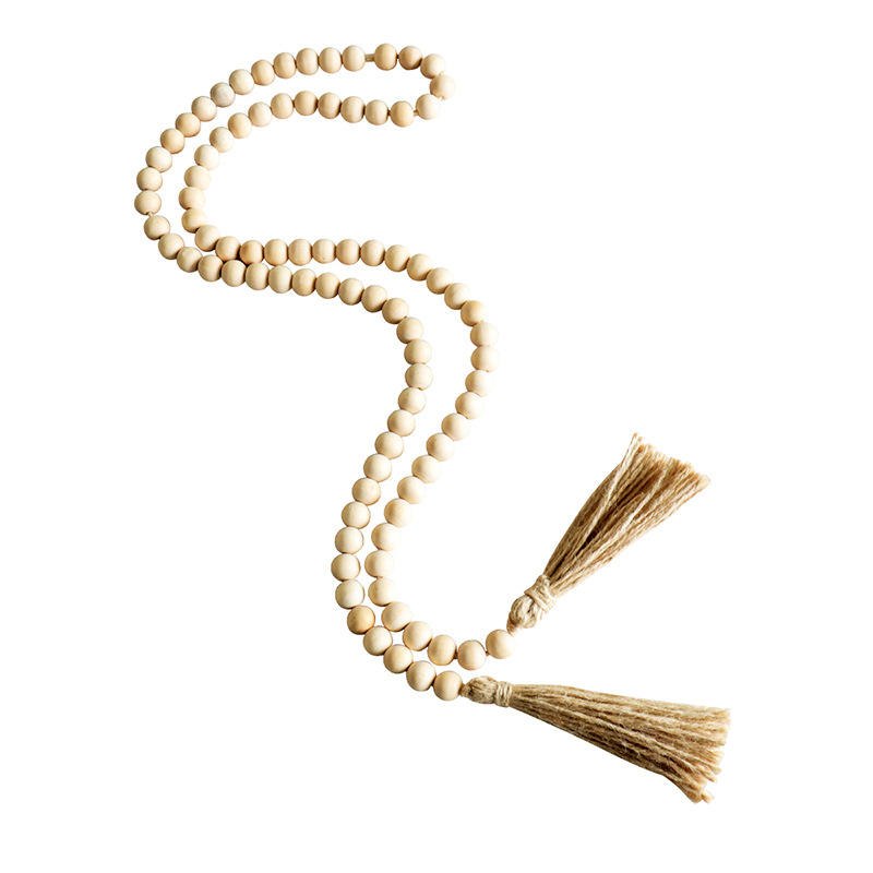 Guirlande de perles en bois rustique avec pompons, 140 cm, décoration murale faite à la main, perles de couleur bois naturel et corde de chanvre