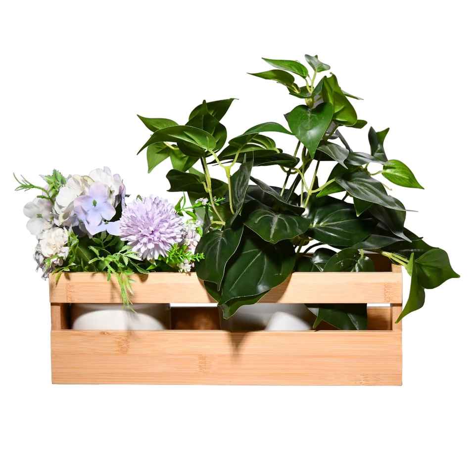 Seau en bois rustique avec bord festonné, pots de rangement décoratifs, conteneurs de jardin vintage style ferme, lot de trois