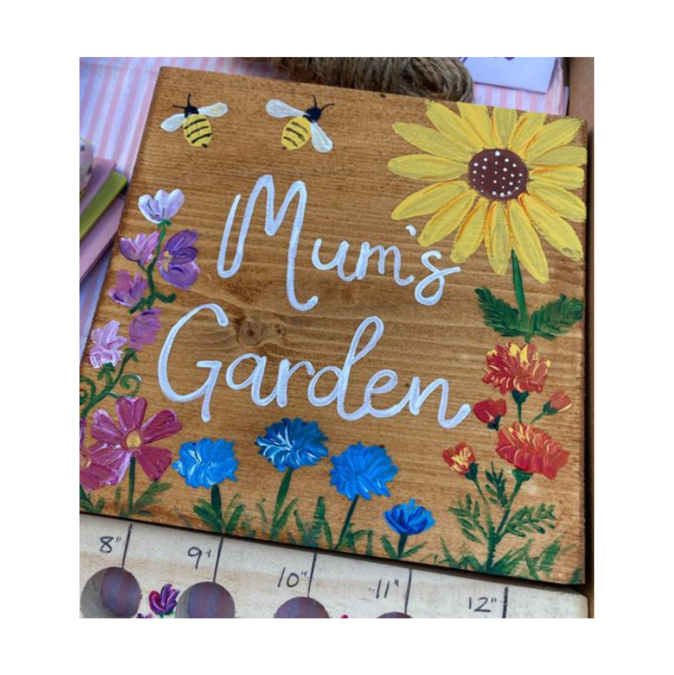 Panneau de jardin rustique en bois, peinture florale artisanale, plaque décorative murale extérieure, panneau suspendu, cadeau fête des mères, panneau en bois