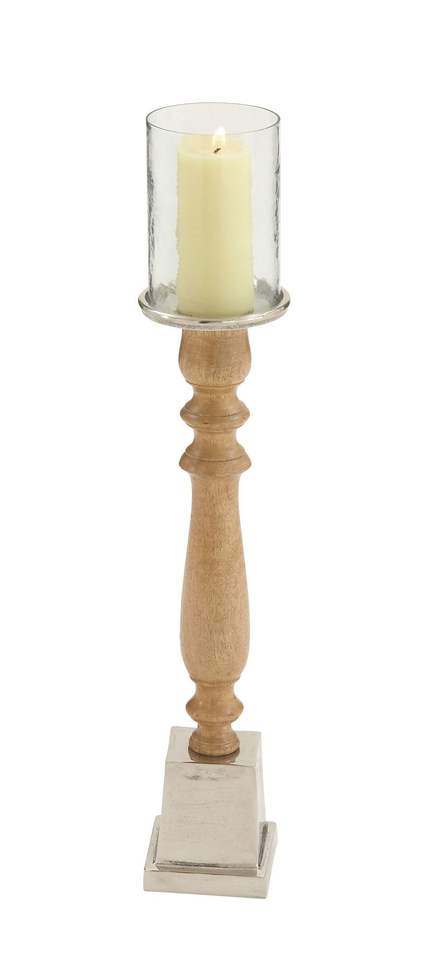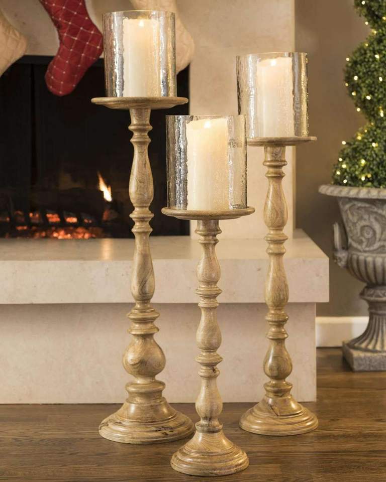 Ensemble de bougeoirs rustiques en bois avec abat-jour en verre, grands bougeoirs sur pied pour la décoration intérieure