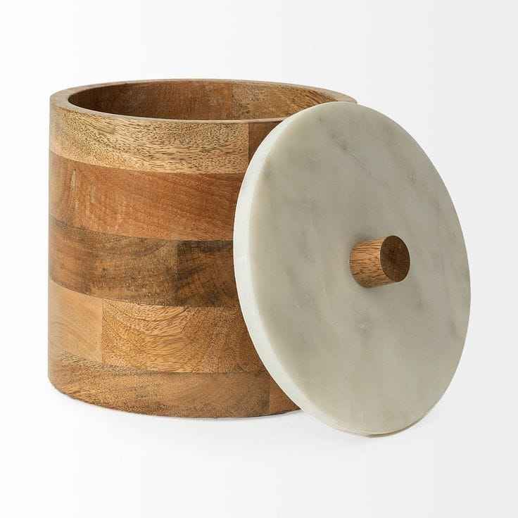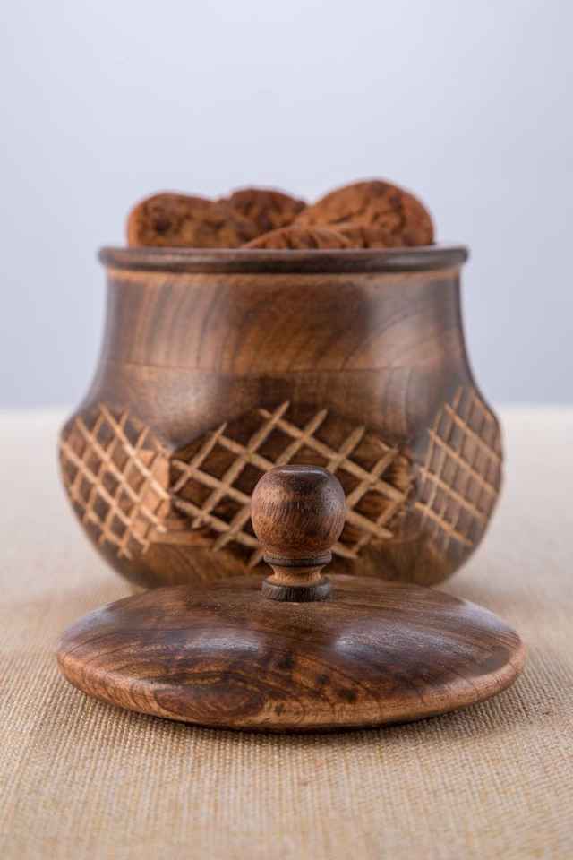 Pot de rangement en bois rustique avec couvercle pour l'organisation du garde-manger et la présentation décorative sur comptoir